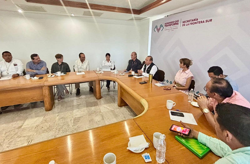 Tapachula, Chiapas.- En un esfuerzo por consolidar la coordinación institucional en materia de comercio y fiscalización en la región, la Secretaría de la Frontera Sur, encabezada por la secretaria María Amalia Toriello Elorza, llevó a cabo la primera reunión de vinculación interinstitucional con autoridades aduaneras, portuarias y municipales de la región fronteriza.