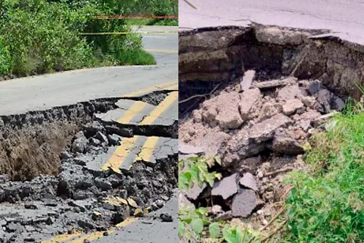 Señalaron que el puente está cerrado a la circulación de vehículos, además de que en la zona por las fuertes lluvias se han hecho enormes socavones.