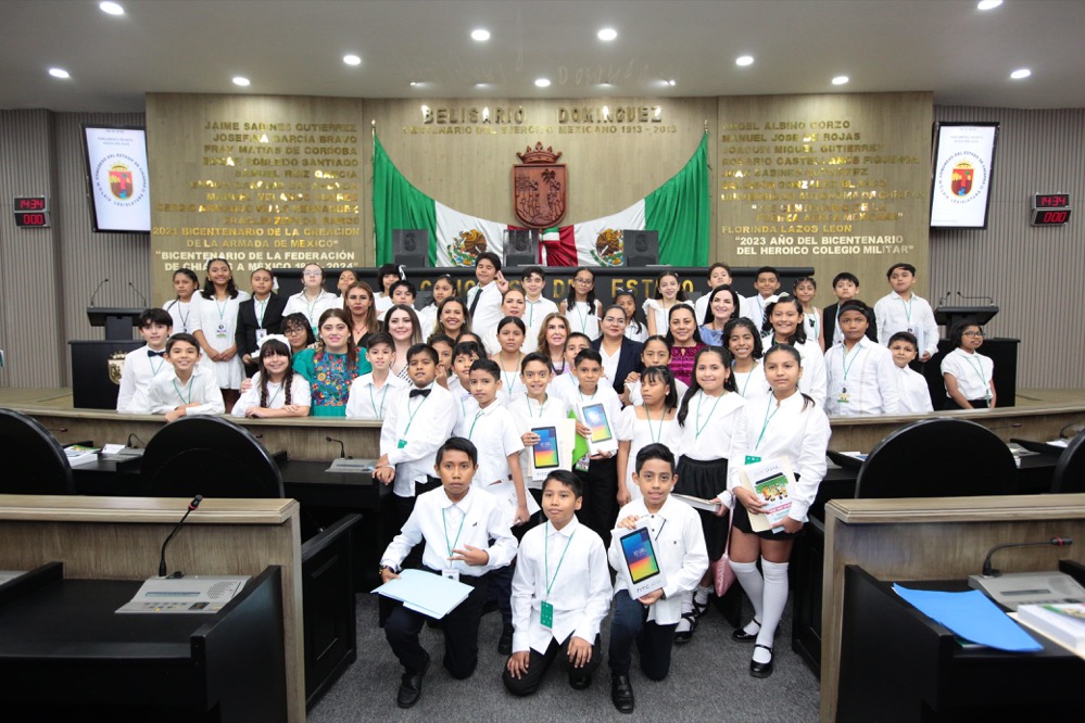 Tuxtla Gutiérrez, Chiapas; 4 de julio de 2025.- Con la participación entusiasta de 40 niñas y niños diputados por un día y cinco suplentes, el Congreso de Estado llevó a cabo el “Parlamento Infantil Nueva ERA” en la sede del recinto parlamentario, donde la niñez de Chiapas dio a conocer propuestas e iniciativas ciudadanas acordes a la realidad que enfrentan.