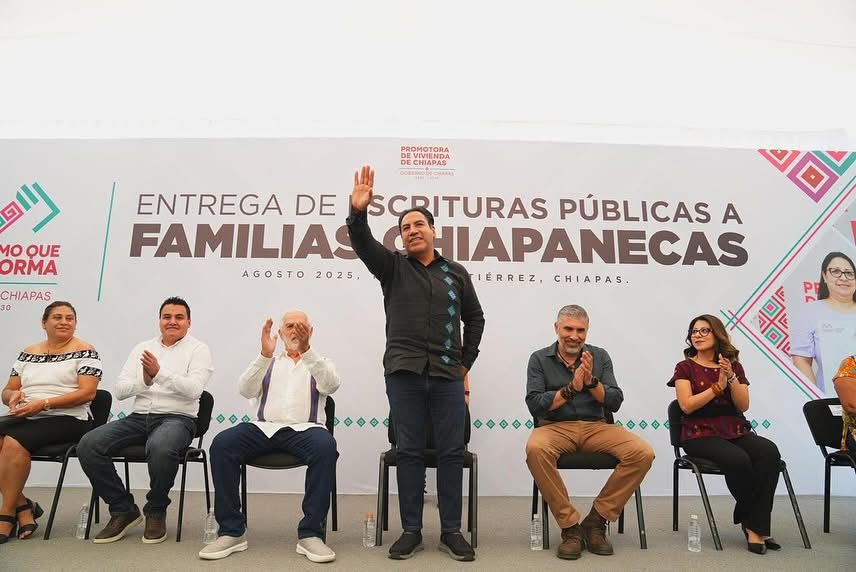 Desde la capital del estado, el gobernador Eduardo Ramírez Aguilar encabezó la entrega de escrituras públicas a familias de distintos municipios, donde subrayó el compromiso de su gobierno para que más chiapanecas y chiapanecos vivan en paz y tengan certeza jurídica sobre su patrimonio.