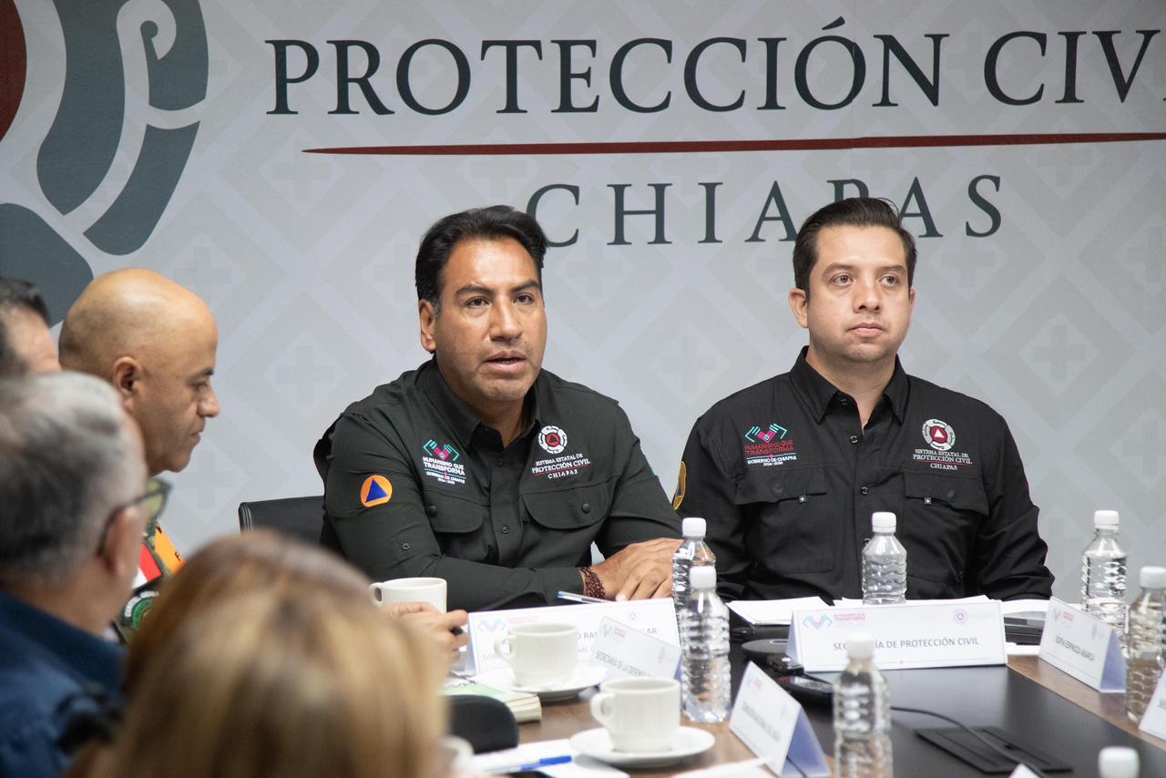 El gobernador Eduardo Ramírez Aguilar encabezó la sesión extraordinaria del Consejo Estatal de Protección Civil, donde se analizaron los pronósticos de lluvia para Chiapas y se evaluaron los daños ocasionados por la onda tropical número 33, que impactó a cinco regiones y 32 municipios. En este marco, informó que se ha desplegado toda la capacidad de respuesta para brindar ayuda humanitaria a la población, restablecer la conectividad en tramos carreteros y atender las afectaciones en infraestructura, agua potable, energía eléctrica y otros servicios prioritarios.
