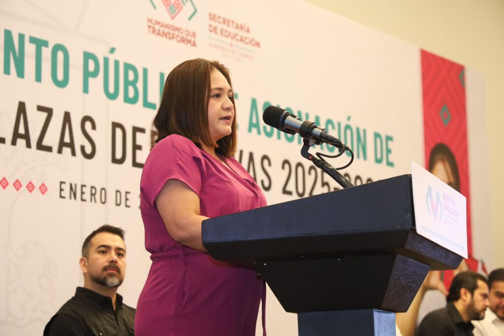 En representación de las y los beneficiarios, Griselda Sánchez Vázquez, participante del Proceso de Admisión, reconoció que la asignación de plazas se realizó bajo principios de orden y justicia, y refrendó su compromiso con la formación integral del estudiantado para fortalecer la educación en la entidad: “Reafirmo mi disposición de trabajar con responsabilidad, compromiso y amor”.