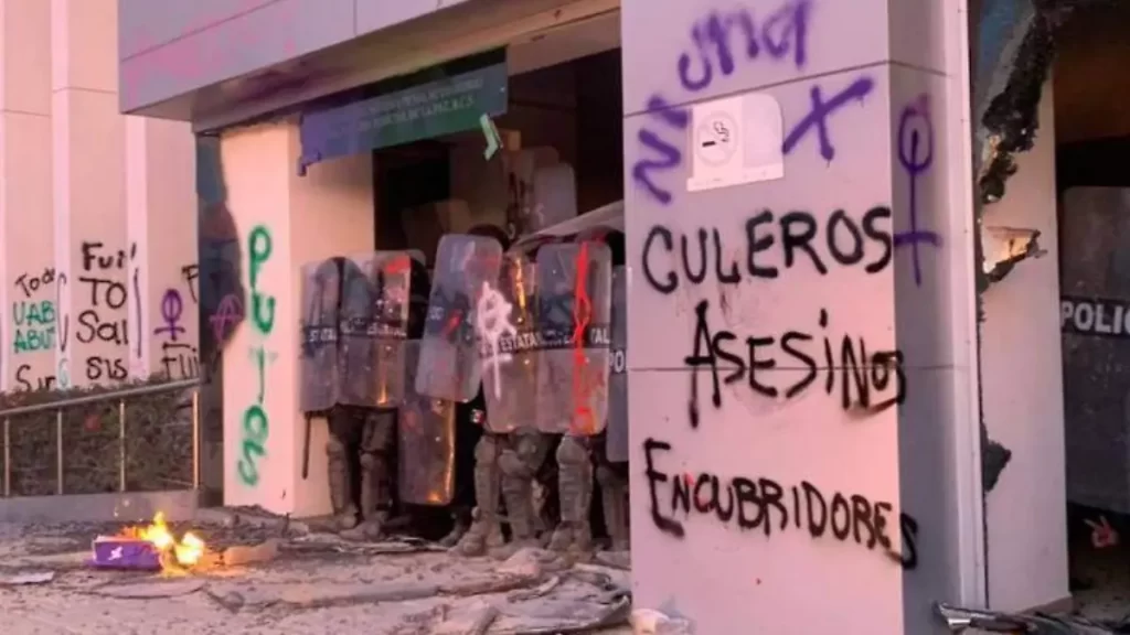 Hechos similares se registraron en otras ciudades como Toluca y Cuernavaca, donde también se reportaron pintas en edificios públicos y quema de algunos objetos durante las movilizaciones.